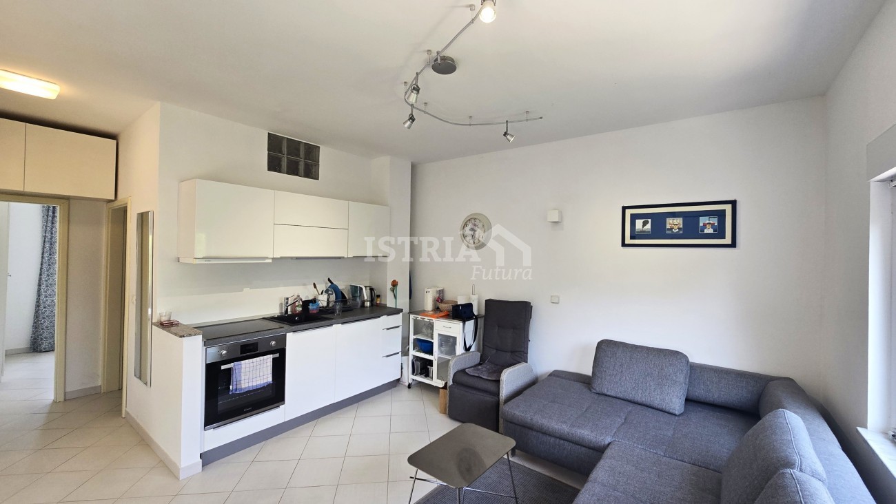 For sale is a 40 m2 apartment, located on the first floor of a small residential building in a beautiful, quiet part of Poreč, 900 meters from the sea and 3 km from the city center.
