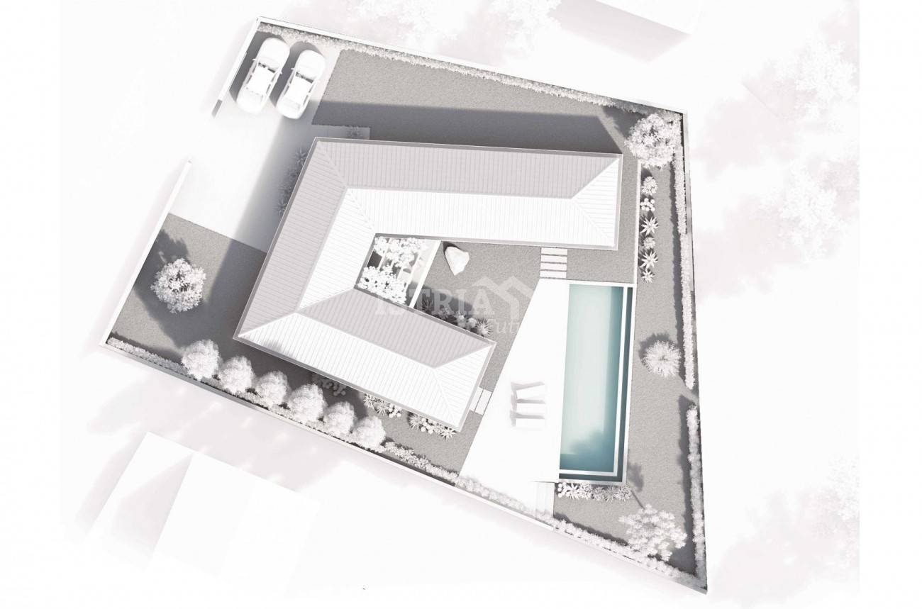 U dvorištu sa strane pristupa sa javnoga puta, nalaze se 2 vanjska parking mjesta, dok se sa druge strane, okružene prirodom, uz ljetnu kuhinju nalazi bazen površine 50 m2, okružen sunčalištem i mediteranskim raslinjem.