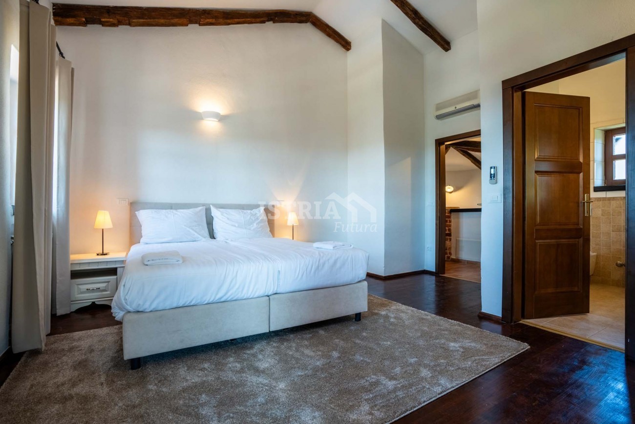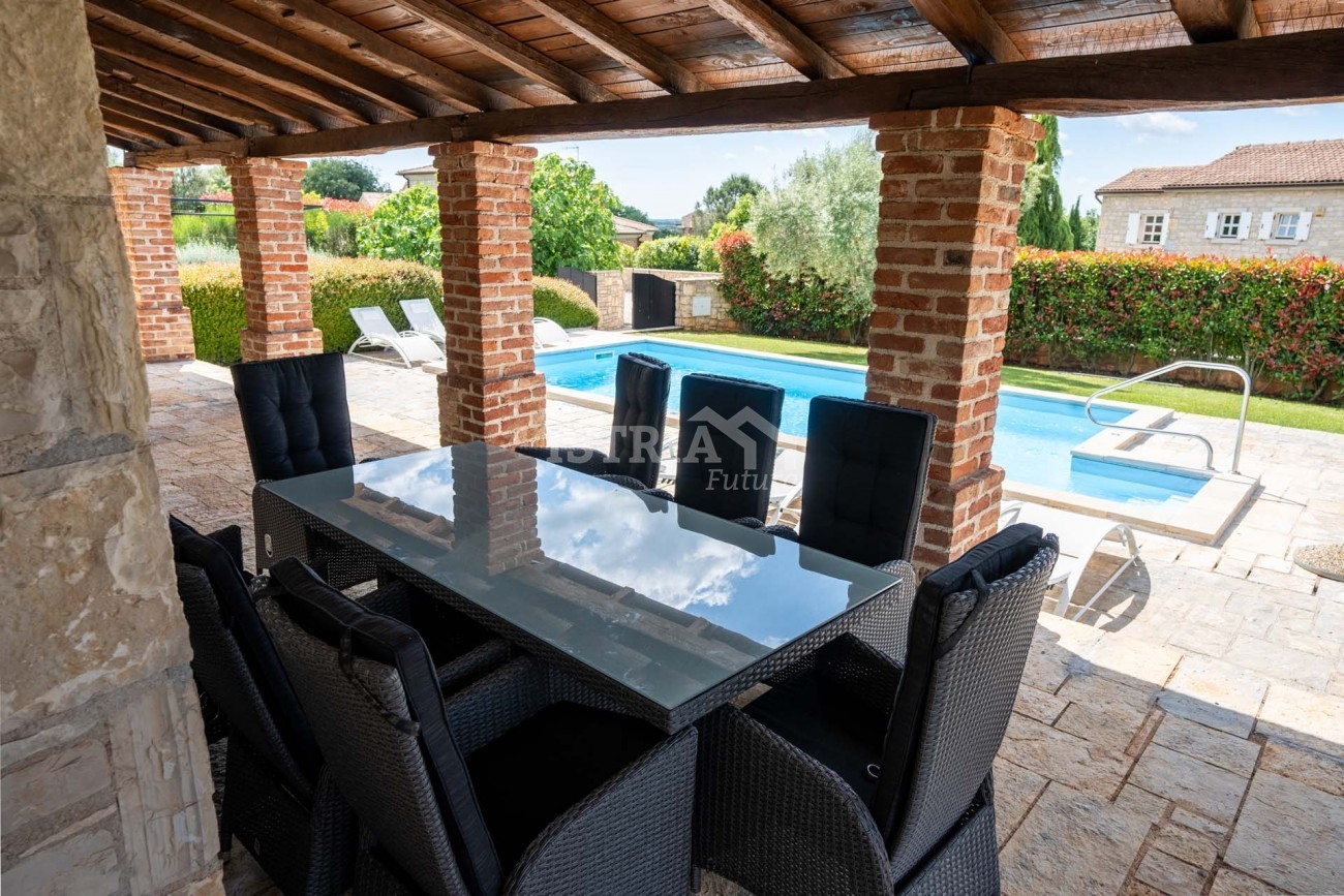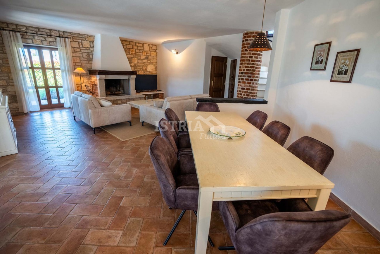 Na prodaju prelijepa kamena vila površine 260 m2 raspoređenih na prizemlje i kat, smještena na ograđenom i uređenom zemljištu površine 1.082 m2, udaljena 2,5 km od Sv. Lovreča, 10 km od Lima (mora) i 15 km od Poreča.