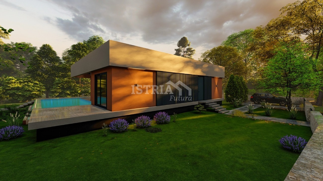 La casa ha attualmente una superficie di 100 m² e c'è la possibilità di costruire un ulteriore 30% della superficie esistente al piano terra e la stessa superficie al piano interrato. La casa si trova su un terreno di 960 m² e dista solo 50 metri dal mare e 200 metri dal centro di Parenzo.