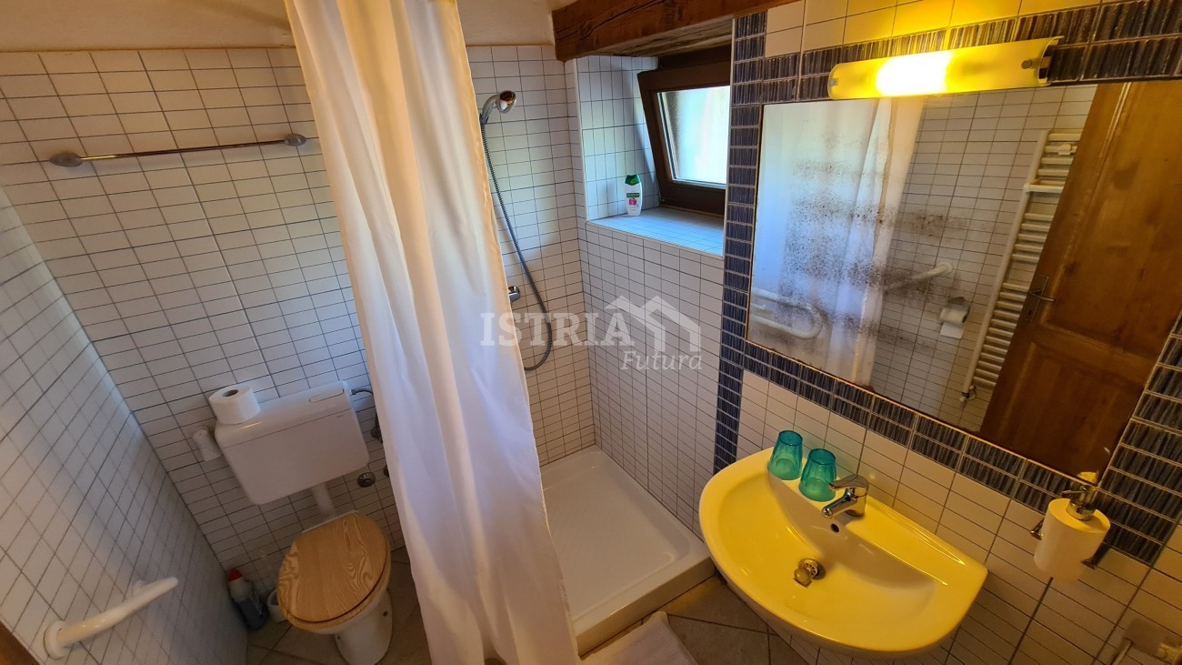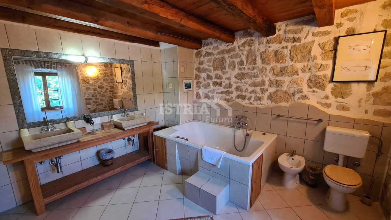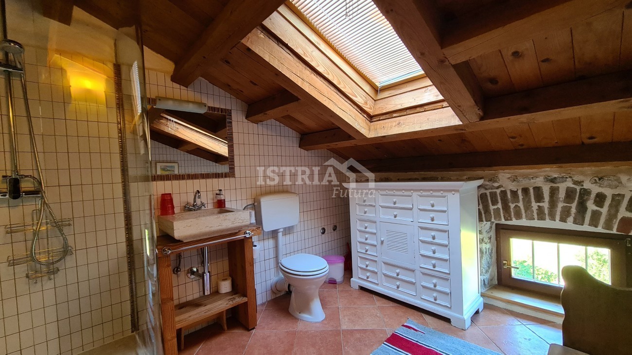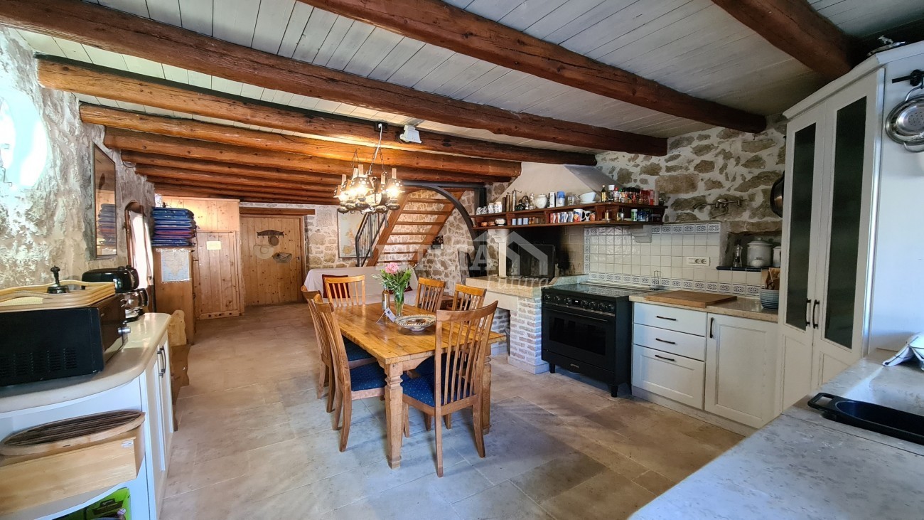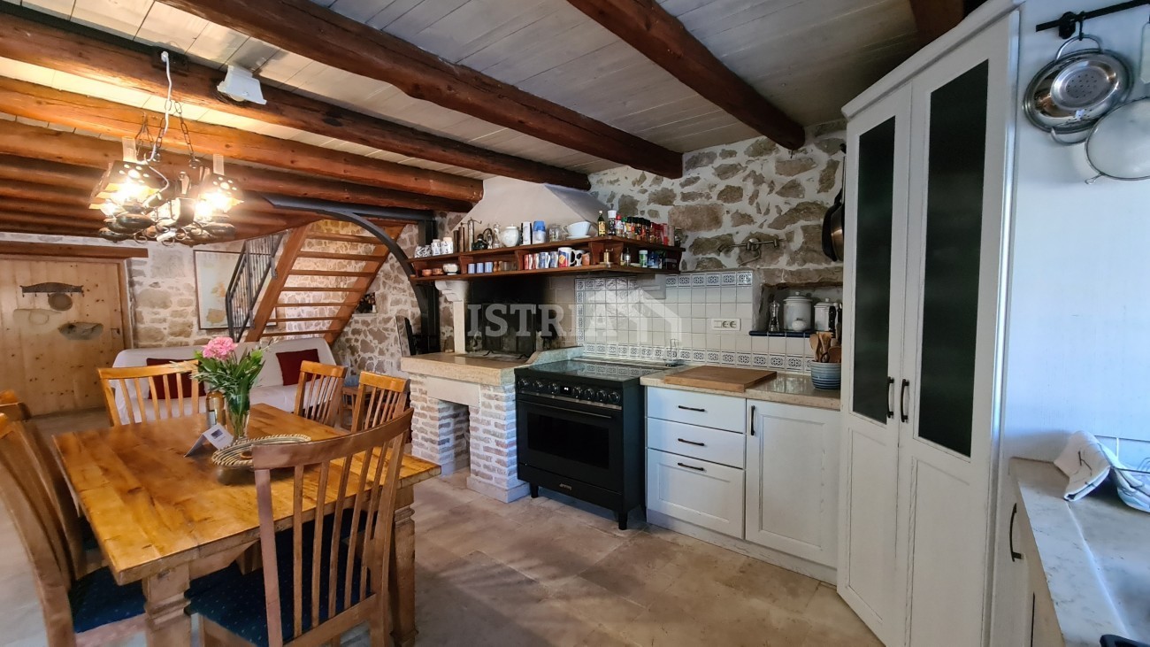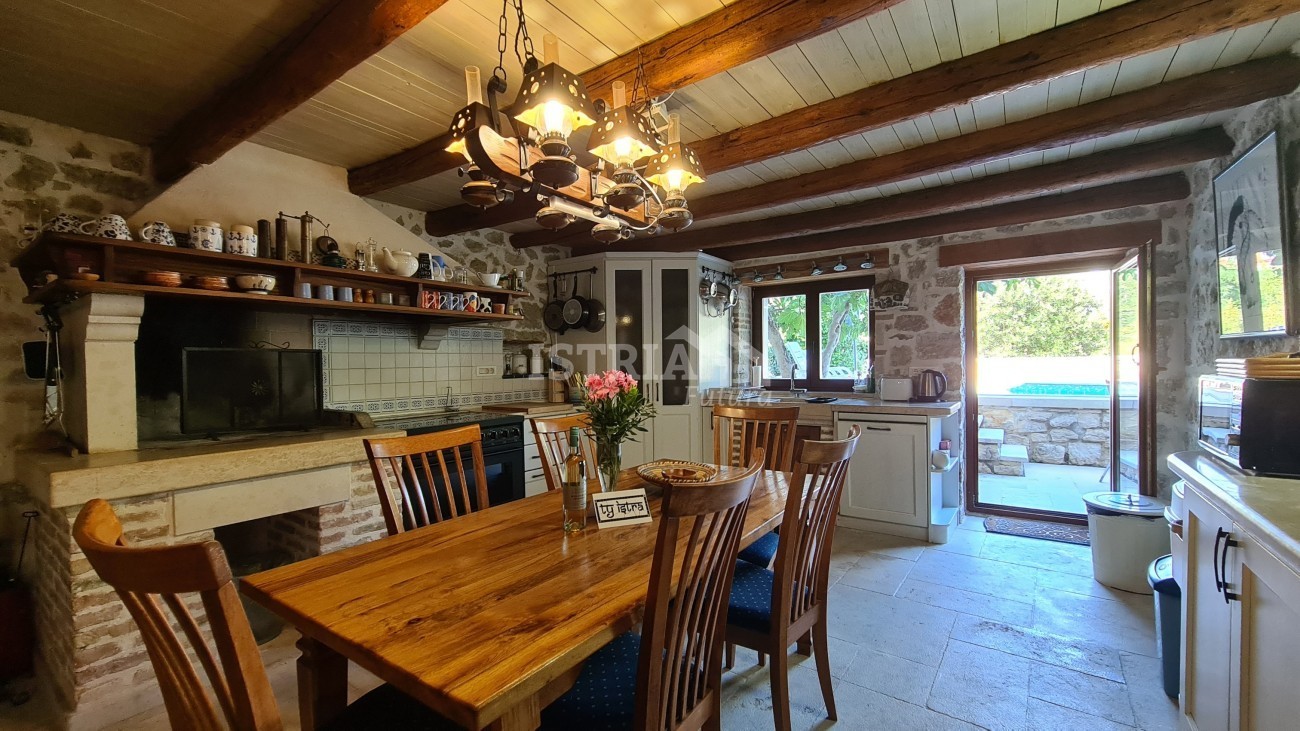 In vendita un'incantevole casa in pietra ristrutturata con una superficie totale di 240 m², situata su un terreno di 530 m² con piscina e 2 posti auto coperti. La casa si trova in una posizione bellissima, tranquilla e riservata, a 8 km dal centro di Parenzo e dal mare.