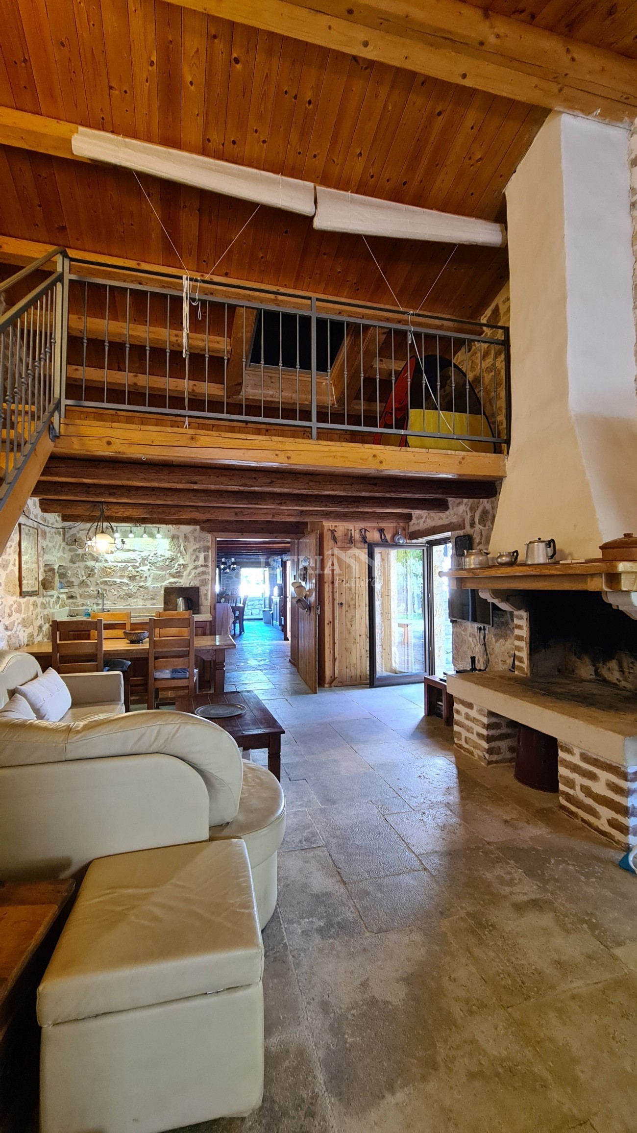 Al piano terra si trova la prima unità, un monolocale con soggiorno, cucina e bagno, mentre la seconda unità, anch'essa un monolocale con soggiorno, cucina, bagno e una splendida galleria.