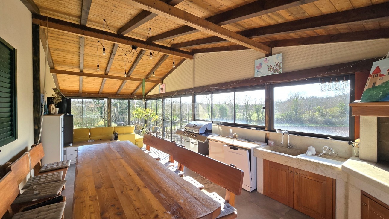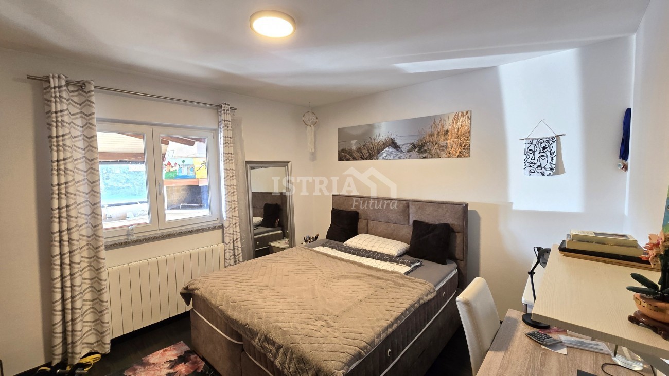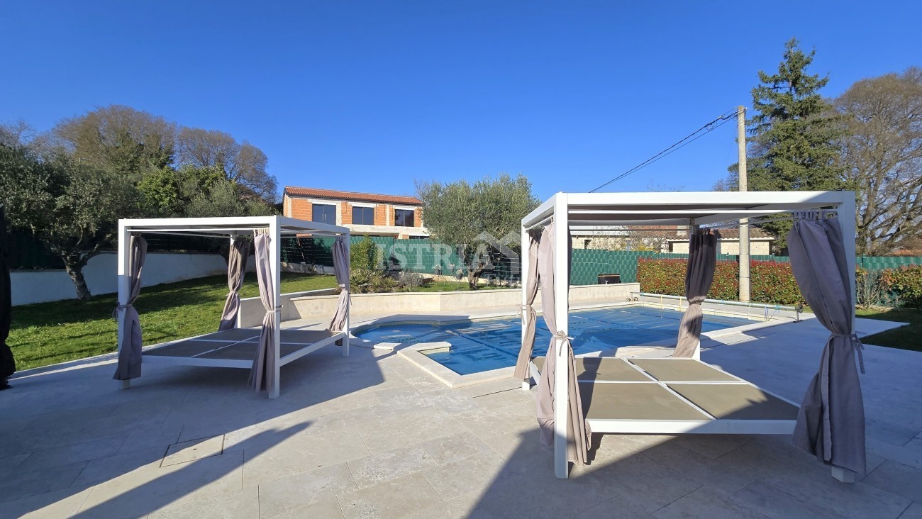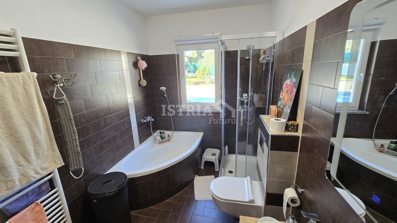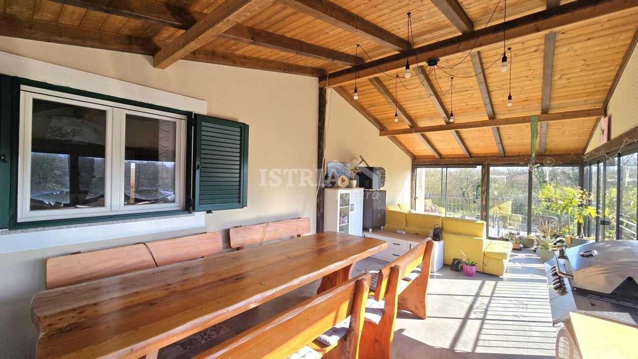 Vendesi splendida casa di 198 m², situata su un terreno recintato e curato di 2.007 m², a 6 km da Tinjan e da tutti i servizi necessari come negozi, scuole, ecc., a 17 km da Pazin, a 22 km da Parenzo e a 15 km dal mare.